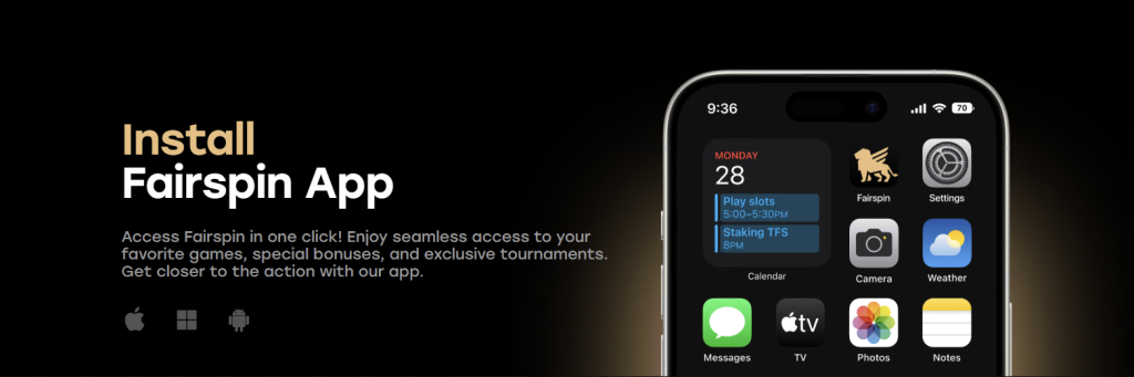 - Instalare ușoară: Deschideți Fairspin în browserul mobil, selectați „Adăugare la ecranul de pornire” și veți avea o pictogramă direct lângă celelalte aplicații.